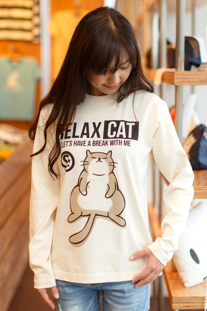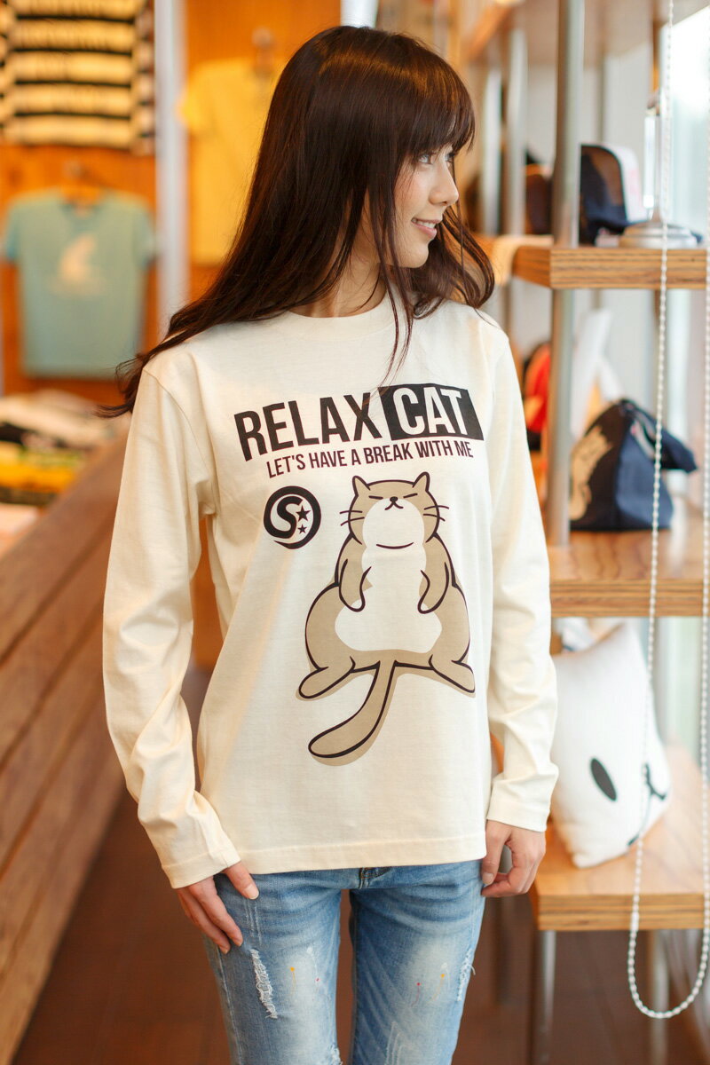 猫 ねこ おもしろ かわいい ロンT RELAX CAT ( ナチュラル ) | ネコ 猫柄 猫雑貨 | メンズ レディース 長袖 Tシャツ | おしゃれ ペアルック プレゼント | 大きいサイズ 【メール便】 SCOPY / スコーピー