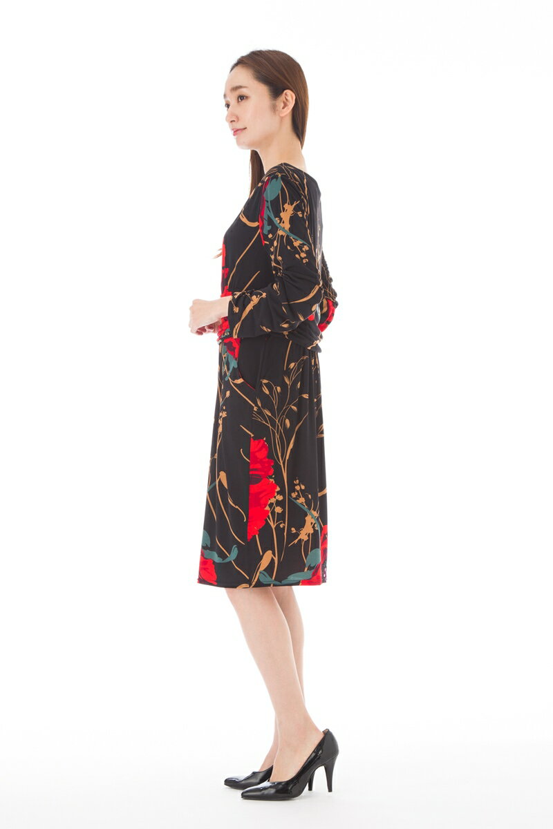 フィフィーユ(FIFILLES)ワンピース T1 T3 T4サイズ 大人ワンピース ジャージーワンピース レディース 長袖 膝丈 花柄 大きいサイズ きれいめ